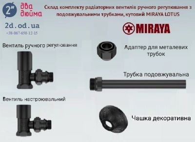 Комплект радіаторних вентилів ручного регулювання з подовжувальними трубками, MIRAYA LOTUS