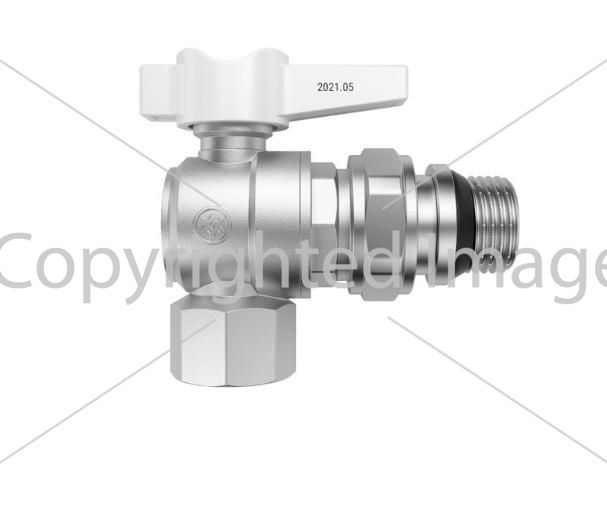 Кран кутовий з американкою прапорець білий MIRAYA