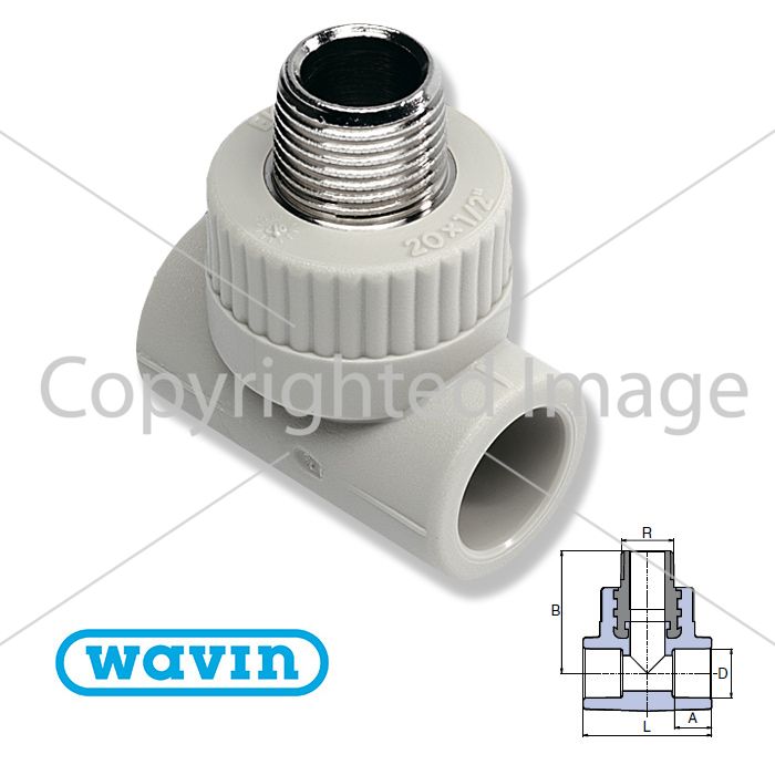 ТРІЙНИК З МЕТАЛЕВОЮ РІЗЬБОЮ ЗОВНІШНЬОЮ EKOPLASTIK призначений для різьбового з’єднання із зовнішньою МЕТАЛЕВОЮ різьбою у місці розгалудження трубопроводу під кутом 90 градусів. Різьбу фітинга виконано з високоякісної ныкельованої латуні. Може працювати на всьому діапазоні робочих температур і тиску (залежно від типу труби). Має компактні розміри та ергономічну форму. Ідеально підходить для важкодоступних місць. Сумісний з пластиковими трубами WAVIN Ekoplastik усіх типів
